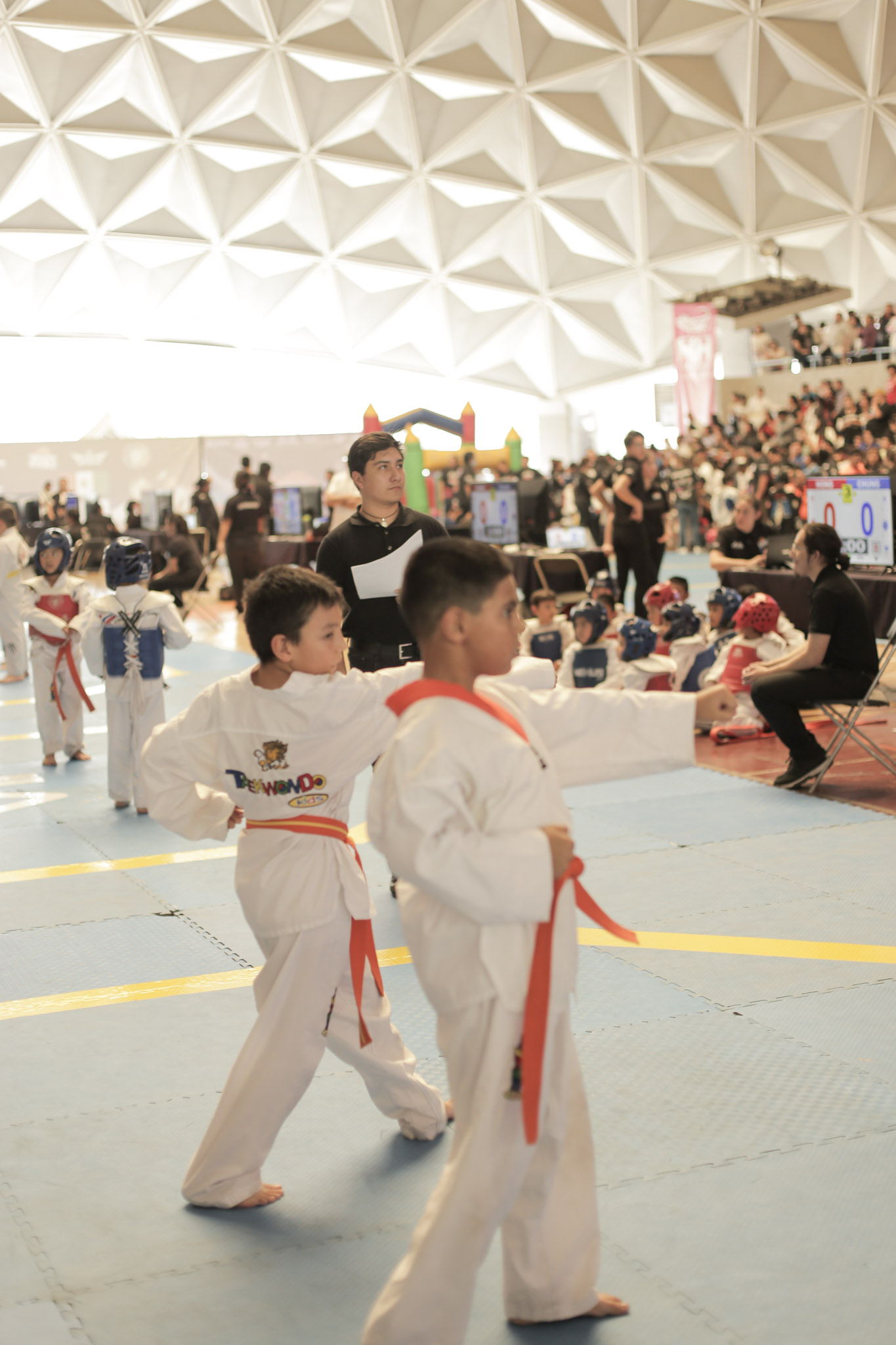 El día comenzó temprano con los preescolares demostrando sus habilidades en circuitos motores y combates llenos de energía. A medida que avanzaba el día, cada grado y categoría mostraba su destreza en poomsae y combate libre.